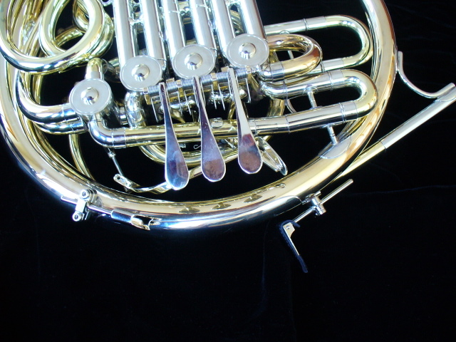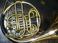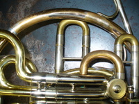 Once the bell tail section was removed the dents were taken out and the bell was cut. It was found that the original flair could be salvaged as a back up flair. A new male ring was fabricated in-house out of Bronze to match the original ring from Paxman and go on the extra bell flair. The horn was stripped of lacquer - the horn had about 50% still on it before this. I also installed an Alexander Flipper and Alexander adjustable pinky hook. Since the client was concerned about acid from his hand I lacquered the inside of both bell flairs and the bell tail. The horn also needed a number of the older solder joints cleaned up and scratches removed from pervious work. If you have any questions about this or any of my work please feel free to contact me.